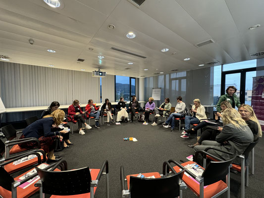 Zum Aufwärmen gab Programmleiterin Mag.a Doris Schulz einen Imput zum Thema "Rauf auf die Bühne - mein gelungener öffentlicher Auftritt". Anschließend ging es in die Workshop-Phase und die Mentees haben sich Gedanken darüber gemacht, in welcher Weise sie sich bei ihren Mentorinnen und Mentoren bedanken und verabschieden möchten. Nur so viel sei verraten: es wird bestimmt emotional und stimmungsvoll.
